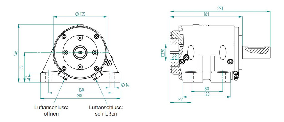 驱动方式:气动打开和关闭卡盘