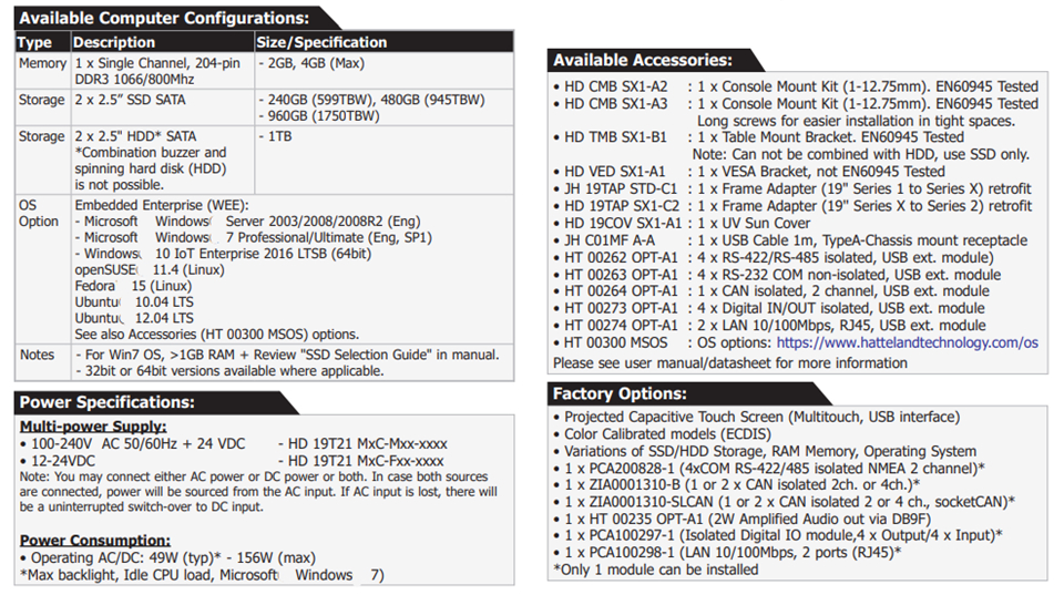x 系列平板电脑以玻璃显示控制、led 背光技术、全调光和多电源为标准配置。此外,还有诸如 hdd 或 ssd 存储介质、多接口配置和多个操作系统选项等选项。该产品系列还可以容纳和组合多点触摸屏和 ecdis 校准等选项。按照工厂标准,19 英寸装置符合 ecdis 标准。