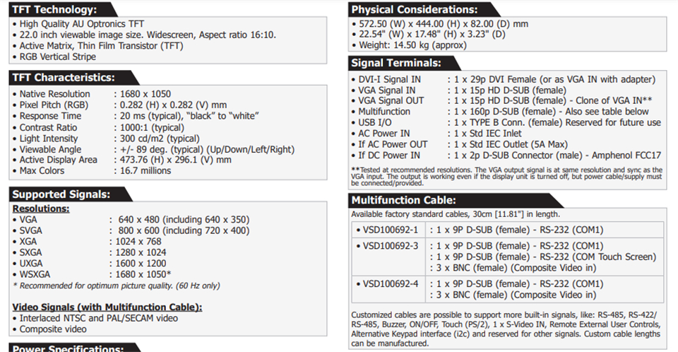 通过使用多功能连接器,可以根据要求增加信号输入/输出选项,该连接器允许通过单根电缆连接连接多种常见信号类型,用于常见信号,例如; 复合视频输入、触摸屏和串行通信。 这些模型提供picture-by-picture (pbp)和picture-in-picture (pip)功能。纵横比为 16:10。