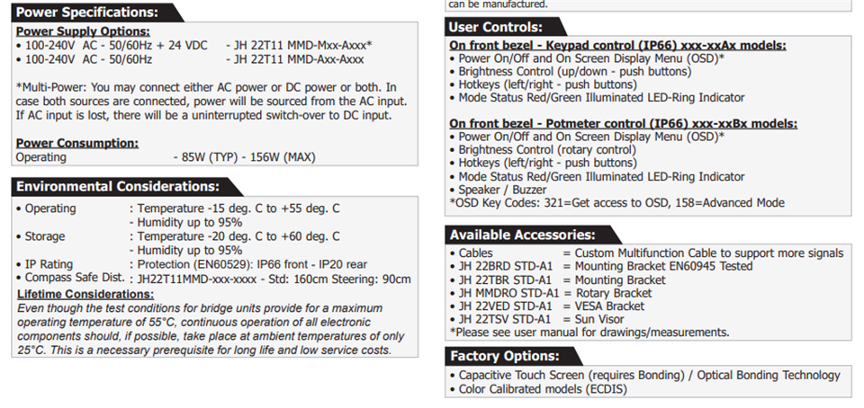 此外,所有型号和变体都可以提供可减轻屏幕起雾的光学粘合技术。根据工厂标准,该装置符合 ecdis 标准。也可提供单 ac 型号。