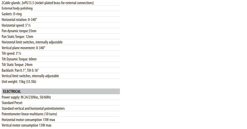 nxpth 允许更大水平/垂直旋转 340°,并配备允许使用预设功能的电位器。