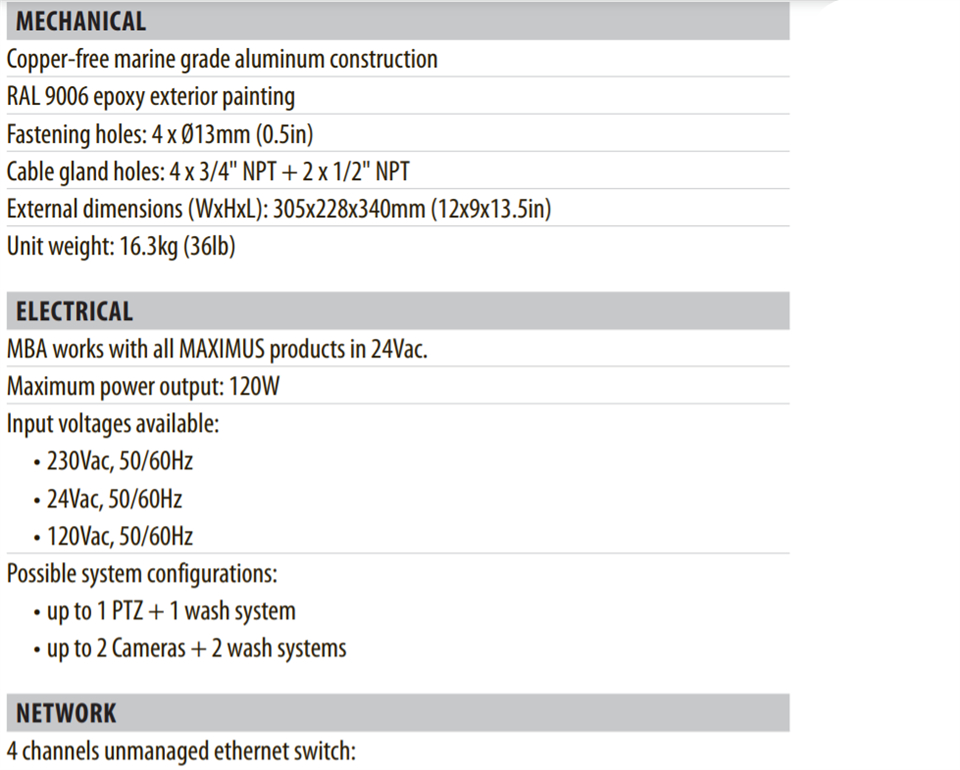 maximus mba 旨在与 maximus 系列 videotec 产品集成并专门使用。