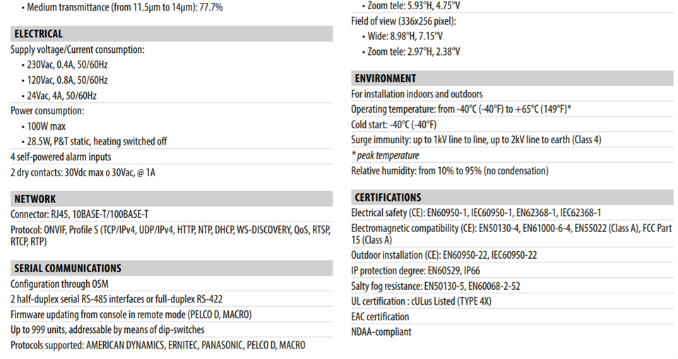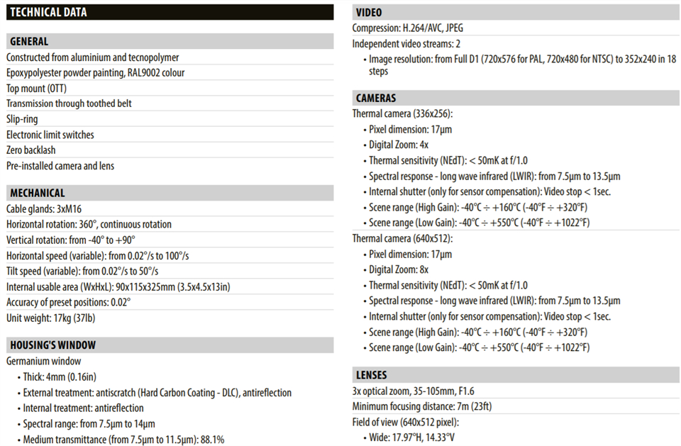 该镜头系统具有高达 24 倍的连续变焦和惊人的自动对焦功能,可快速有效地聚焦在目标上,同时保留优良的图像。ulisse radical thermal 提供模拟控制或 ip,经过认证的 onvif profile s,并与市场上的大多数 vms 兼容。