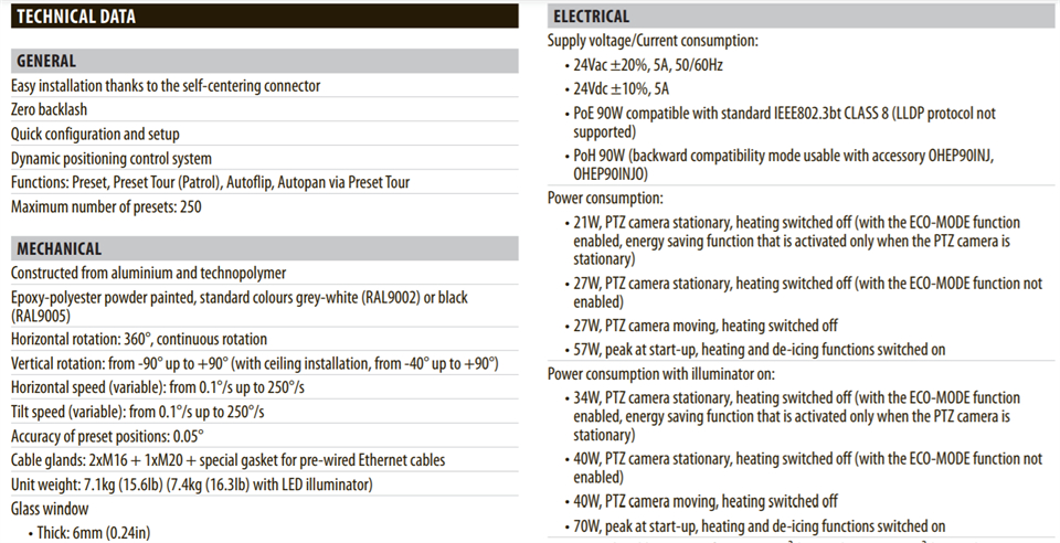 ptz ulisse evo 摄像机非常适合作为城市中心、关键基础设施、交通和铁路户外应用的视频监控加拿大28的解决方案。它旨在保证在具挑战性的户外环境中的完全可靠性和连续运行。它具有强抗腐蚀能力,可以承受很宽的温度范围(-40°c 至 65°c)。ik10、ip66/ip67/ip68、nema type 4x 和 type 6p 防护等级保证了超坚固的结构。ptz 以max.速度移动时,风速高达 230 公里/小时。