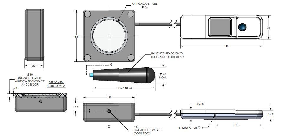 1个8-32螺纹孔,2个1/4-20螺纹孔 |